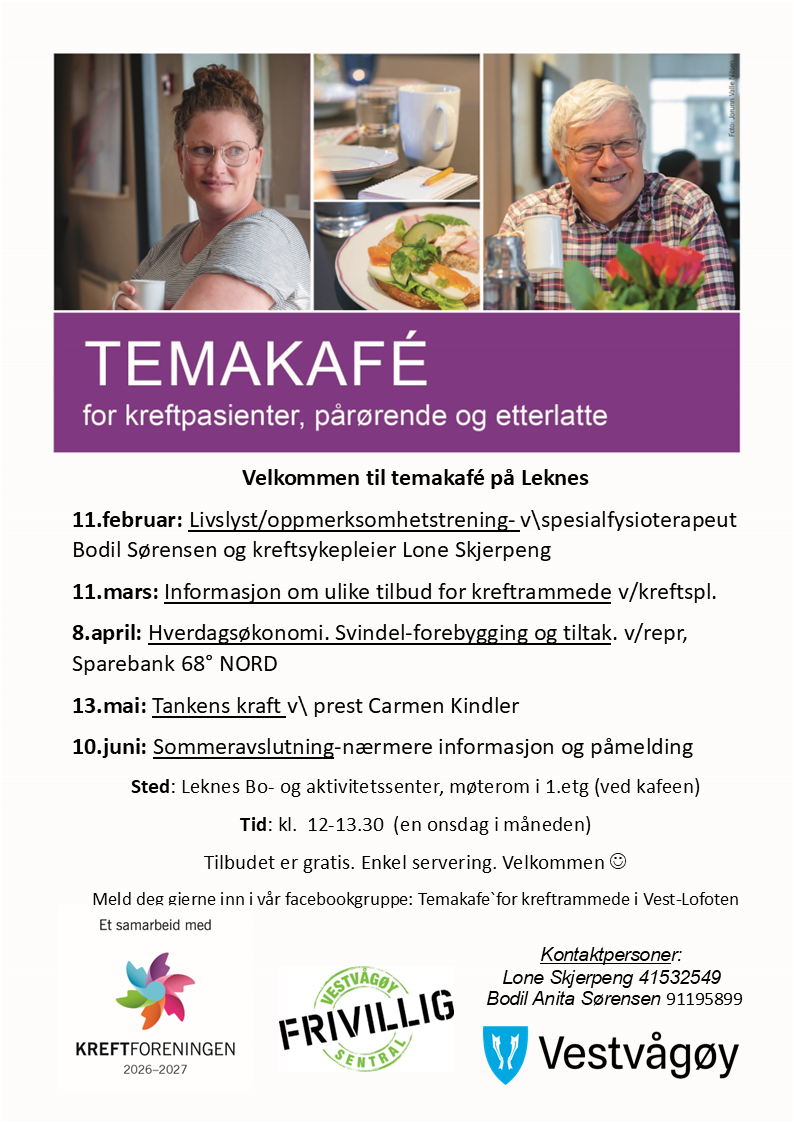 Temakafè for kreftpasienter, pårørende og etterlatte